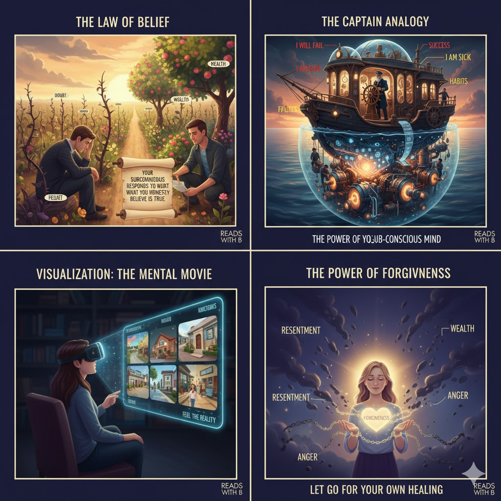 - The Law of Belief: The law of life is not the law of “things,” but the law of belief. Your subconscious responds to what you honestly believe is true.